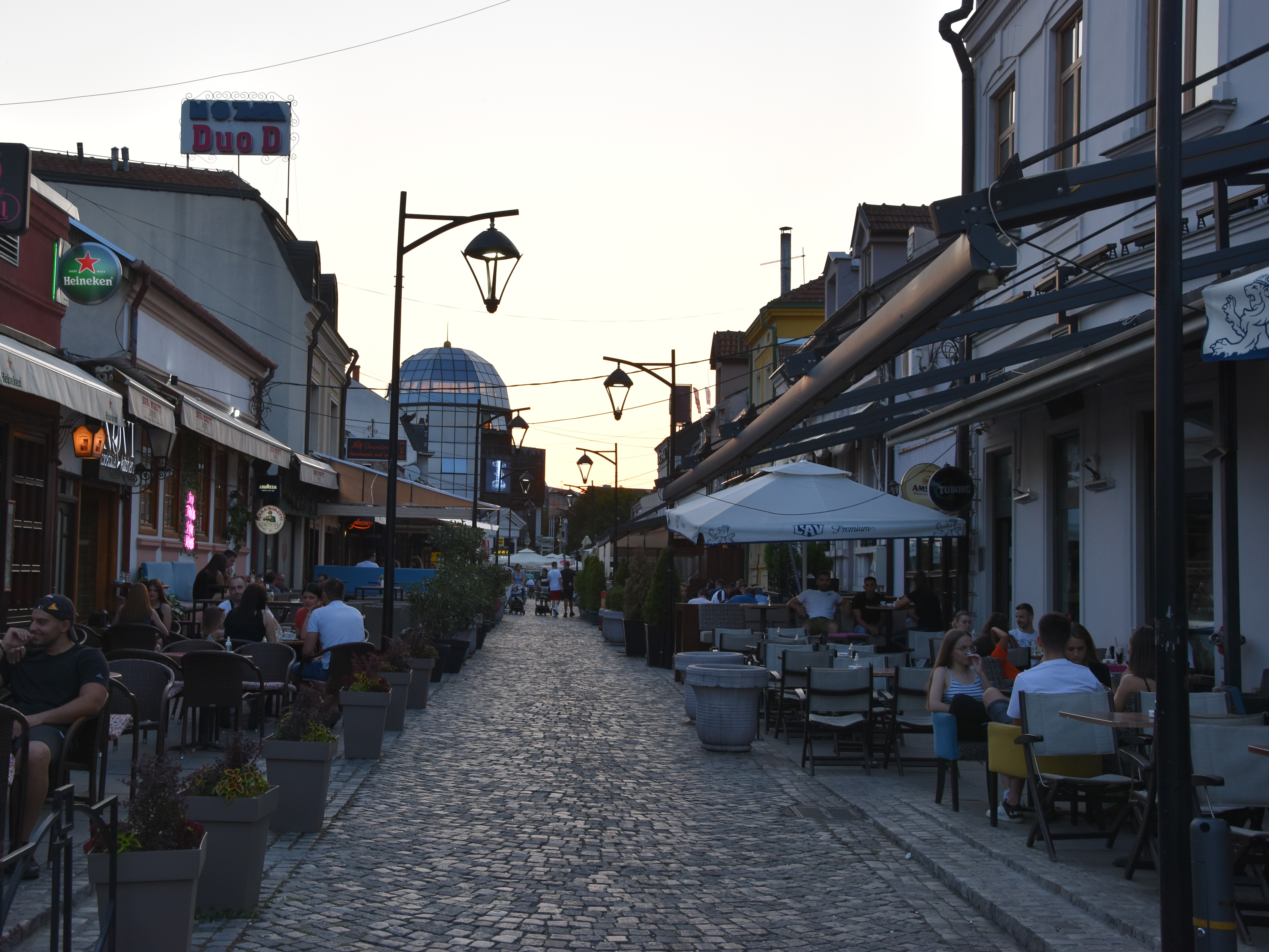 Kadar prikazuje najpoznatiju nišku pesacku zonu, nekadasnju zanatsku cetvrt, a danas centar ugostiteljstva. Fotografija belezi bastu kafica na autenticnoj kaldrmi sa ugradjenim svetiljkama koje nagovestavaju vecernji puls grada