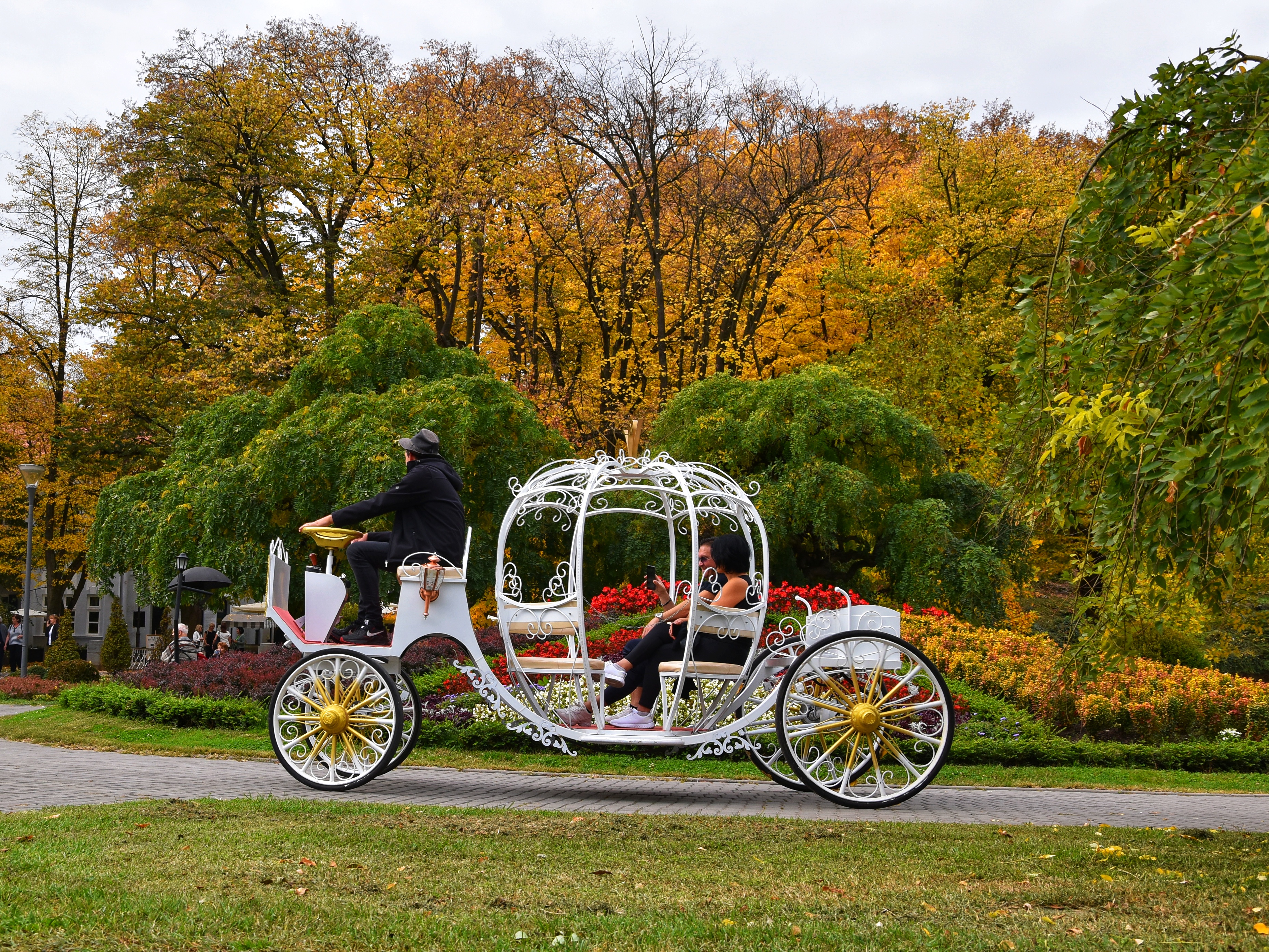 Kao iz bajke: Vožnja belom kočijom kroz jesenje boje banjskog parka